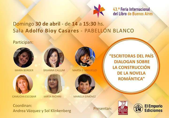 Ese mismo día, solo que a las 14 y en la Sala Bioy Casares del Pabellón Blanco, un grupo de autoras cordobesas y de otros puntos del país se referirán a la construcción de la novela romántica. La mesa estará integrada por Brianna Callum, Marta D’Argüello, Mirta Fachini, Camucha Escobar, Mariela Giménez y María Border.