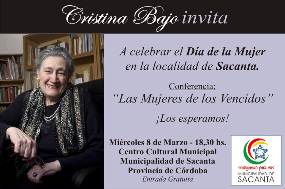 Cristina Bajo recordará dicha fecha en la localidad de Sacanta, oportunidad en la que ofrecerá a charla “Las mujeres de los vencidos”.