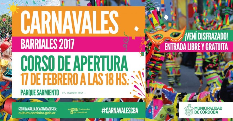 Por otra parte, los corsos se reunirán este viernes a partir de las 18 para dar inicio oficial a los Carnavales Barriales en el Parque Sarmiento (se invita a los vecinos a participar disfrazados).