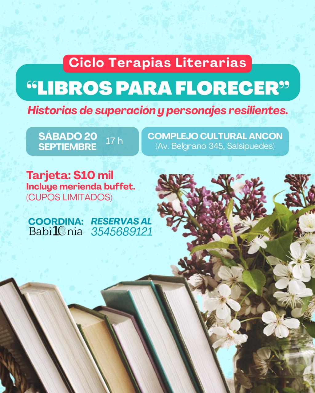 “Libros para florecer” es la propuesta que llevaremos adelante este sábado 20 de septiembre a las 17H. en el Complejo Cultural Ancón, de Salsipuedes.