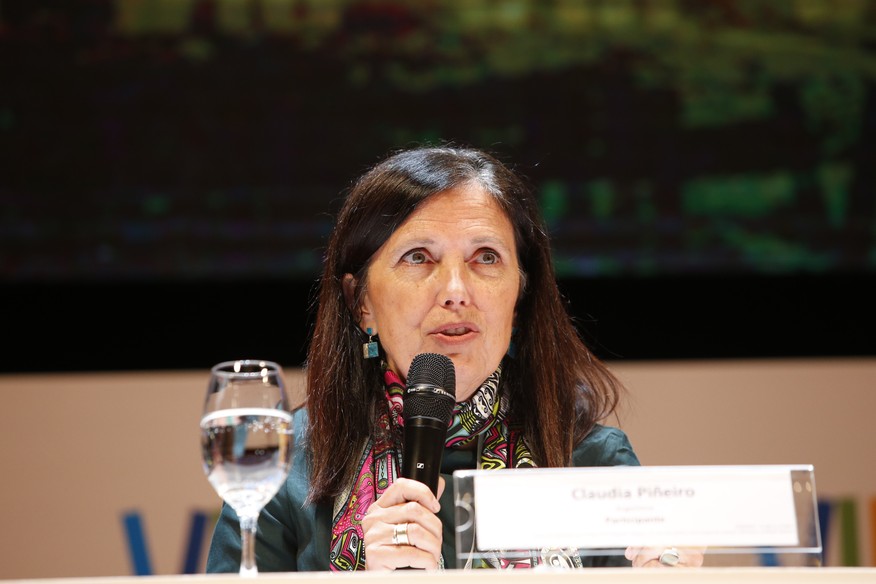 Piñeiro y Sastre, por su parte, plantearon también en sus discursos el debate por el lenguaje inclusivo, la lucha feminista y su visibilidad a nivel mundial. En primer lugar Piñeiro, dentro de la mesa «El valor del español como lengua de culturas. Literatura, oralidad y folclore», desplegó su postura con un extenso escrito que tuvo como corolario un anclaje artístico-musical, trayendo a colación las coplas verdes de Mariana Carrizo (escritas en apoyo a la ley de Aborto legal, seguro y gratuito), los versos en qom de la formoseña Charo Boragin y un tema de Miss Bolivia.