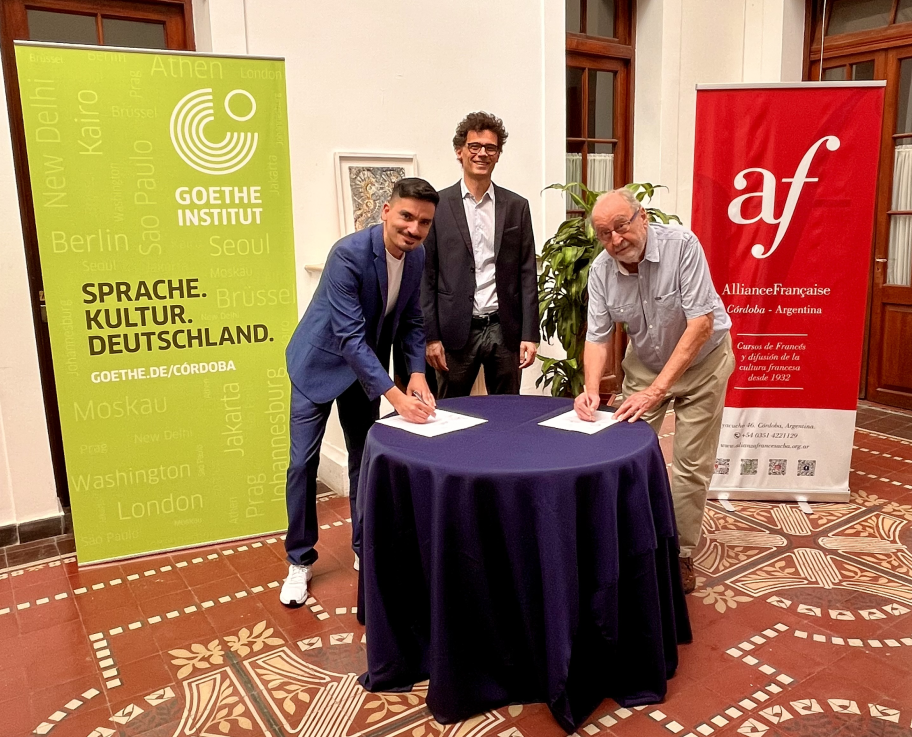 “Gracias por esta pregunta que nos permite aclarar en primer lugar que la Alianza Francesa y el Goethe-Institut nunca trabajan solos, sino siempre en colaboración. La Alianza Francesa es el socio natural y representación de cooperación en Córdoba de la Embajada de Francia y del Institut Français d’Argentine. El Goethe-Institut trabaja en estrecha colaboración con la Dirección Regional para Sudamérica con sede en San Pablo (Brasil), la sede central del Goethe-Institut en Múnich, pero también con el Goethe-Institut en Buenos Aires. Por lo tanto, muy a menudo los proyectos se desarrollan con todos estos socios.