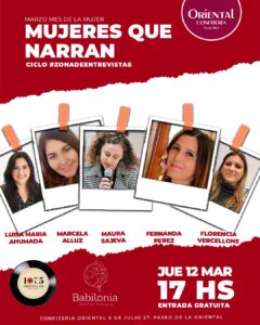 Bajo el título “Mujeres que narran”, el jueves 12/3 a las 17 se realizará la primera entrevista en la que participarán las autoras Luisa María Ahumada y Marcela Alluz, junto a la actriz Maura Sajeva. La coordinación estará a cargo de Fer Pérez y la entrada será libre y gratuita.