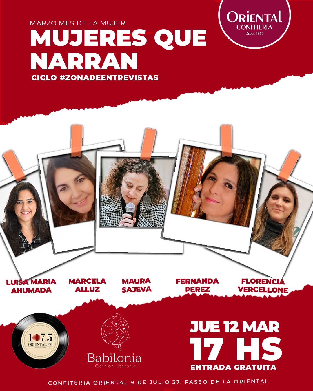 El jueves 12/3 comenzamos con #ZonaDeEntrevistas: La ciudad como territorio narrativo, una propuesta que se desarrollará en la emblemática confitería La Oriental. La mesa abordará el eje “mujeres que narran” y participarán las escritoras Luisa Ahumada y Marcela Alluz, y la actriz Maura Sajeva.